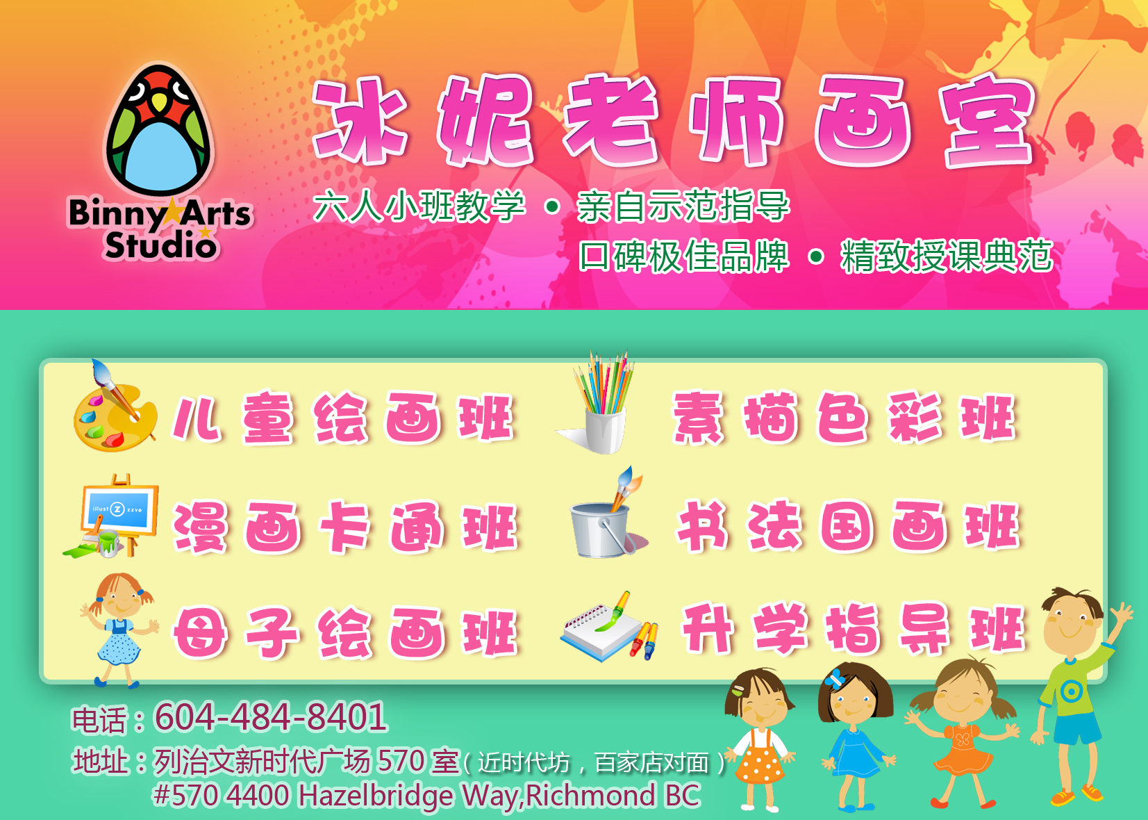 本画室除授课,网页制作外,兼有标志,名片,招贴画,车贴,宣传页,菜单,节目单等的设计与制作业务。