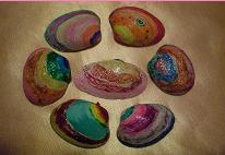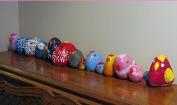 1,石头作品这些从海边捡来的普通的石头在我们的巧巧手下变成了艺术品。